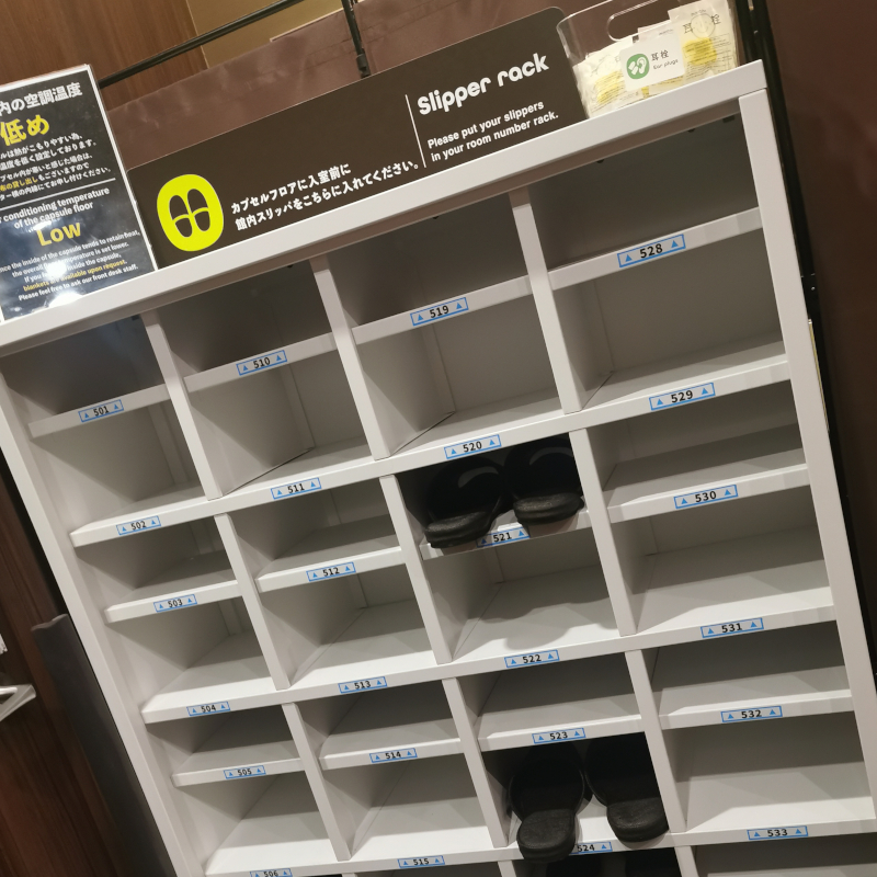 到了我的胶囊楼层后,我换上了拖鞋。